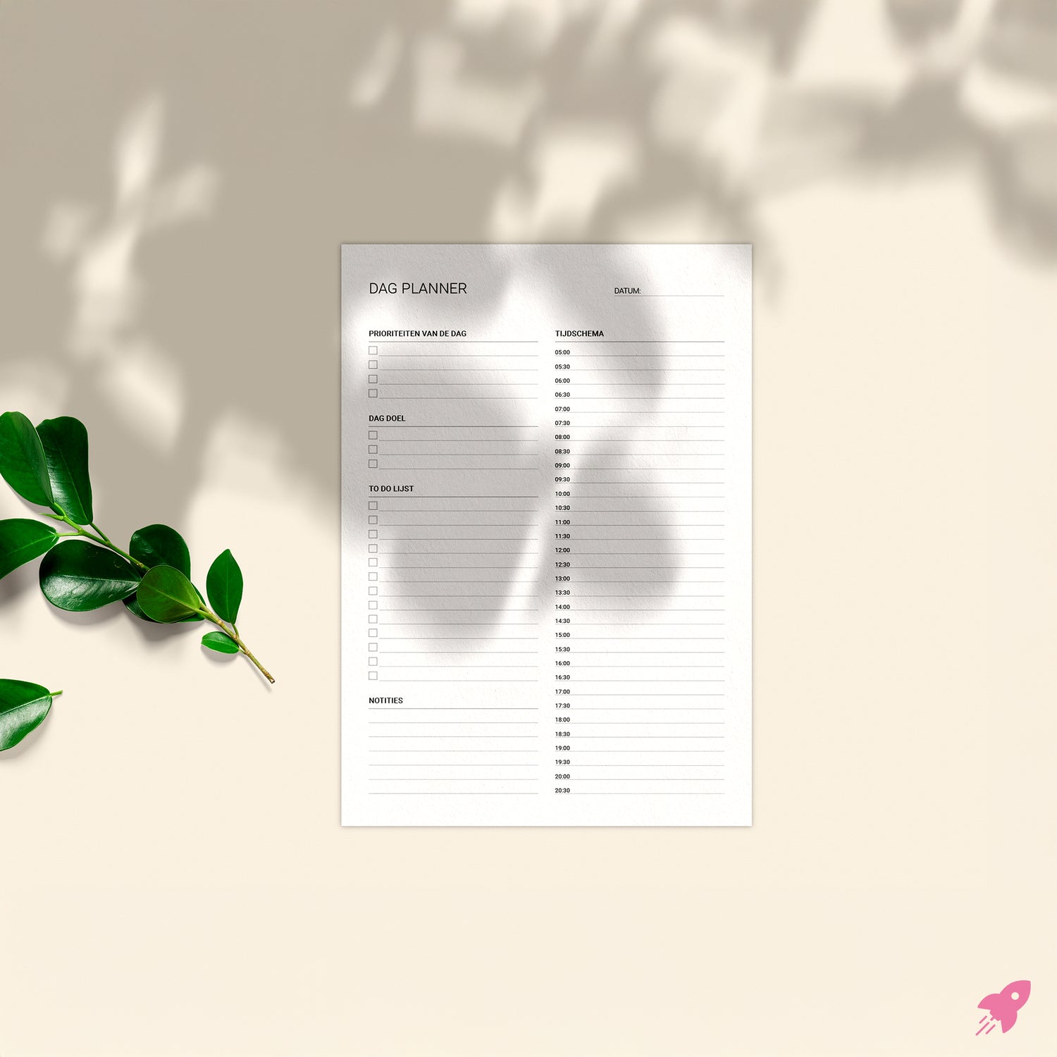 Deze dagplanner helpt je om even stil te staan bij wat vandaag echt aandacht verdient. Niet alles hoeft tegelijk. Eén overzicht, één moment voor jezelf, en daarna stap voor stap verder.